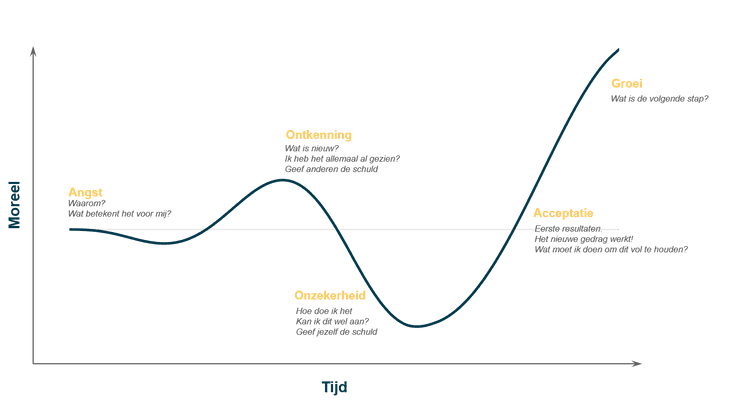 - Gedragsverandering heeft begeleiding nodig: toepassen nieuwe werkwijzes, prestaties evalueren, feedback en aanmoediging krijgen